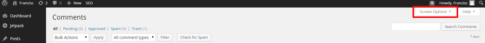 Se dă click pe Screen Options sus în dreapta.