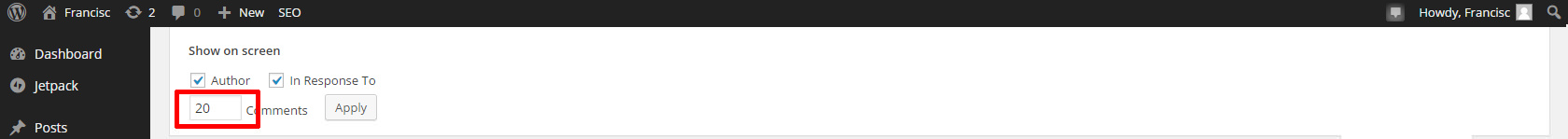 Una din lucrurile pe care le doream să le cunosc despre wordpress a fost cum să afișez mai multe de 20 de comentarii per pagină în admin. De ce? Deoarece printre cele 100-200 de comentarii de tip spam, apăreau și vreo 3-4 bune, intrate acolo printr-o eroare. Eu personal observ relativ ușor comentariile normale față de cele spam, din lipsa de linkuri și limba română. Însă setarea cu doar 20 de comentarii pe pagină îmi făcea munca de căutare a mesajelor bune mult mai grea. Trebuia să existe o modalitate de afișare a mai mult de 20 de mesaje.